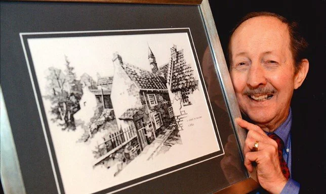 As a token of appreciation, George’s wife Nancy has kindly donated four of George’s beautiful Dunfermline artworks to the Trust. These paintings have been hung in Andrew Carnegie House and depict: